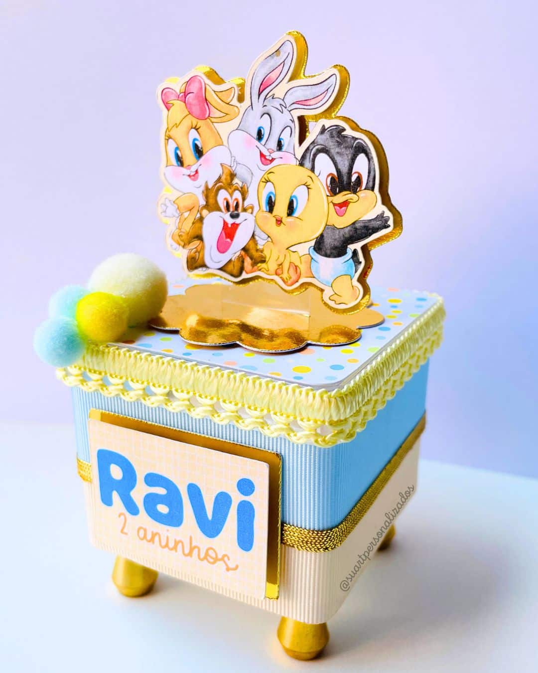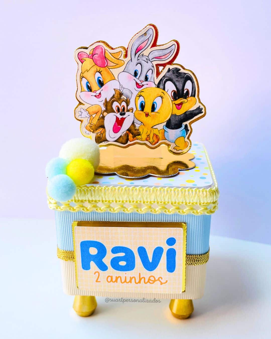 Caixa acrílica Looney Tunes Personalizada Luxo – festa – caixinha decorada