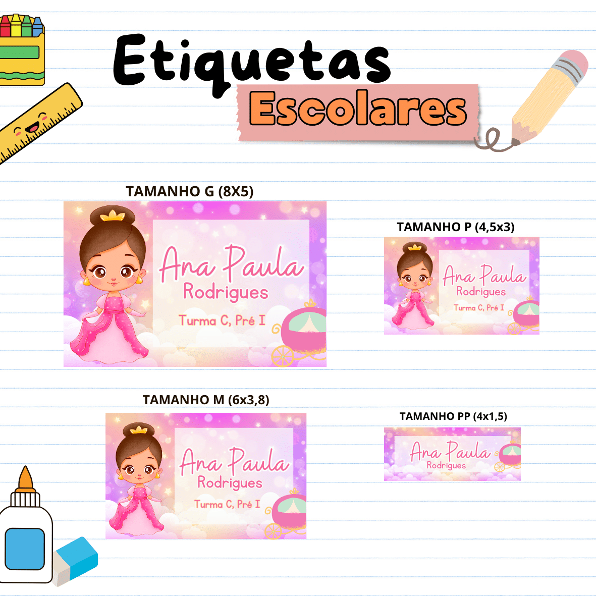 Faça da volta às aulas um momento especial! Adquira agora o Kit Escolar Personalizado e proporcione às crianças uma experiência única e cheia de estilo.Garanta a organização do material escolar do seu pequeno com nosso Kit de Etiquetas Escolares! Feitas em papel fotográfico de alta qualidade, nossas etiquetas são a escolha perfeita para personalizar os pertences da criançada