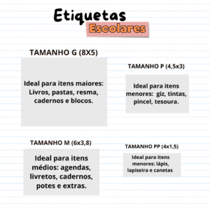Faça da volta às aulas um momento especial! Adquira agora o Kit Escolar Personalizado e proporcione às crianças uma experiência única e cheia de estilo.Garanta a organização do material escolar do seu pequeno com nosso Kit de Etiquetas Escolares! Feitas em papel fotográfico de alta qualidade, nossas etiquetas são a escolha perfeita para personalizar os pertences da criançada