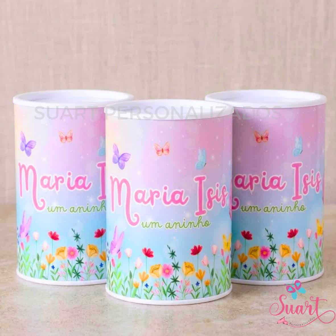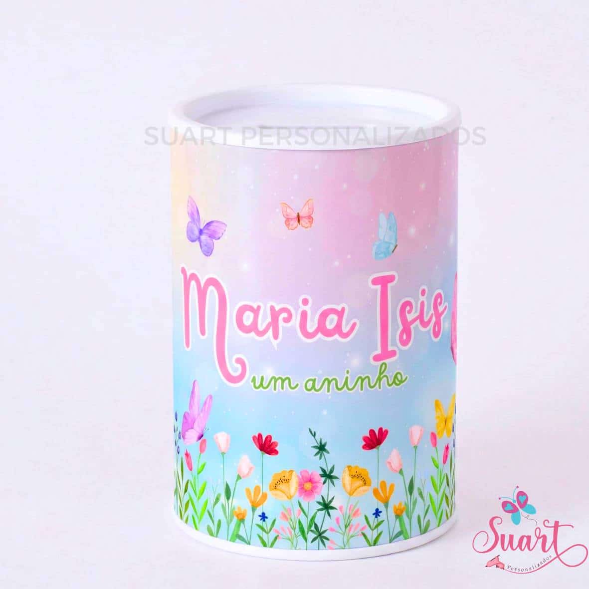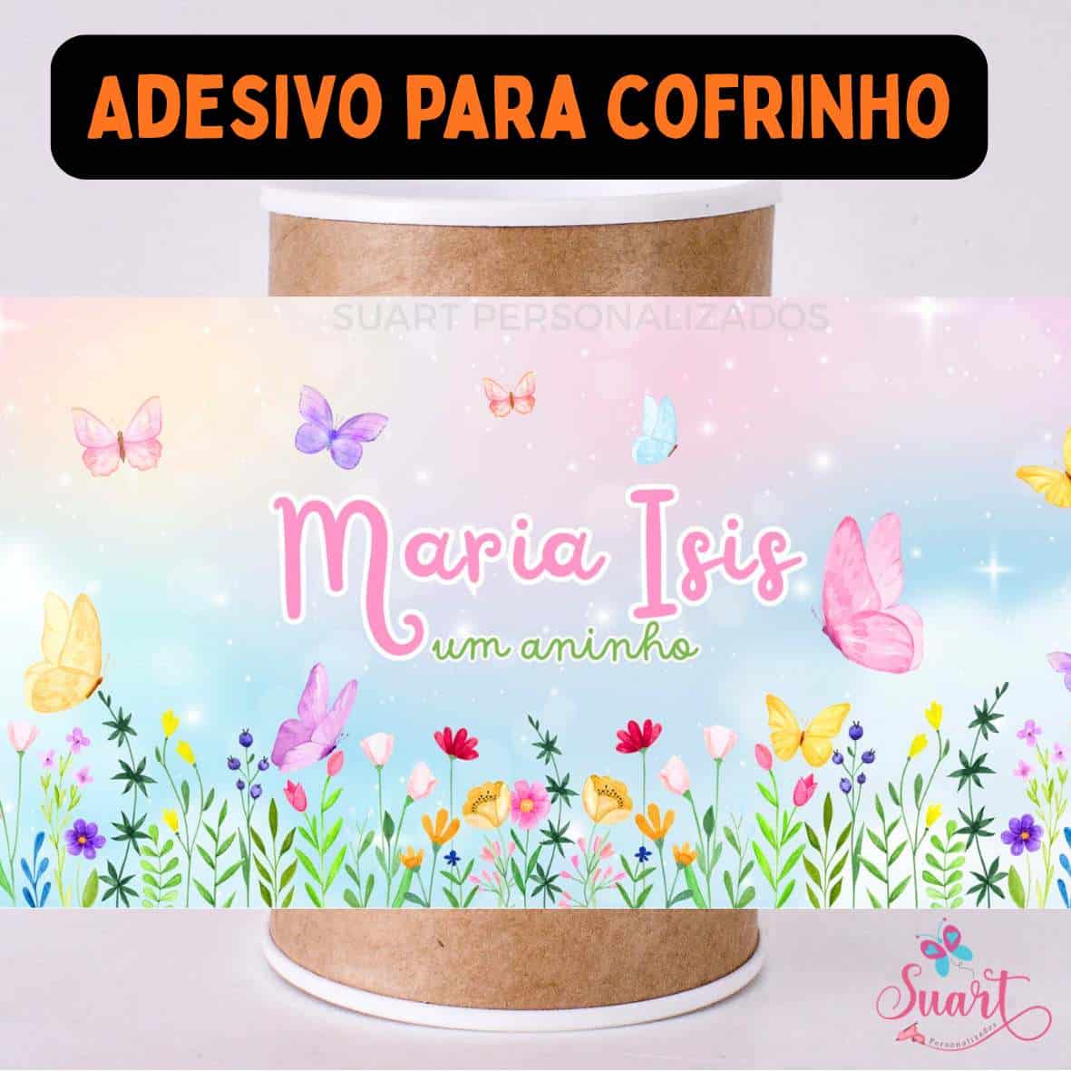 Rótulo adesivo para cofrinho personalizado Jardim das Borboletas
